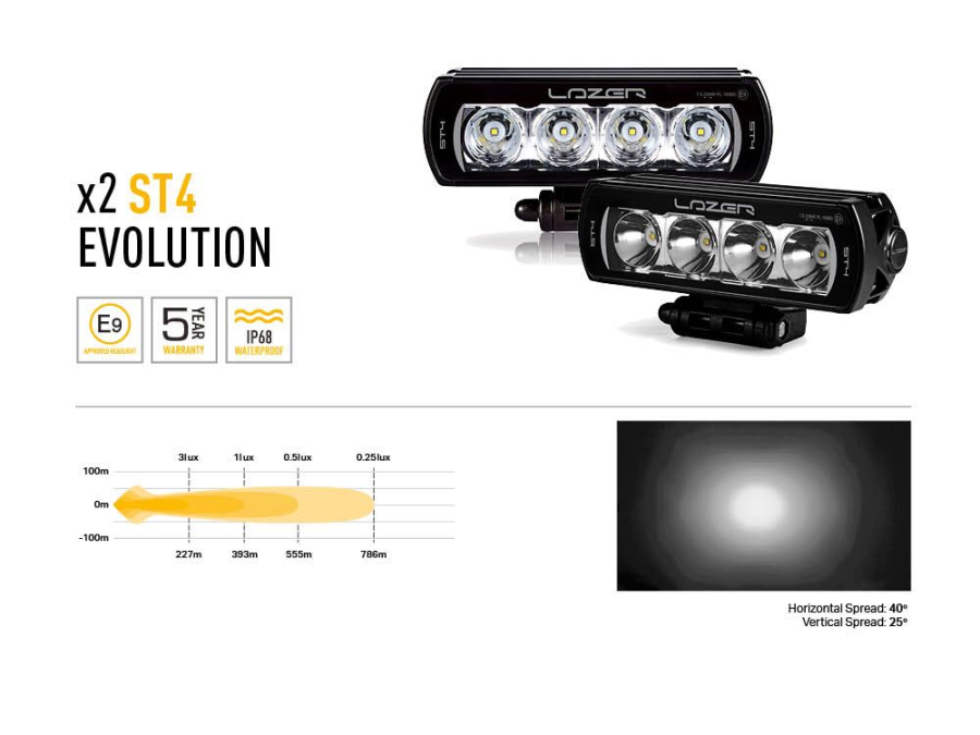 - Izstrādāts priekš ST4 Evolution LED gaismām