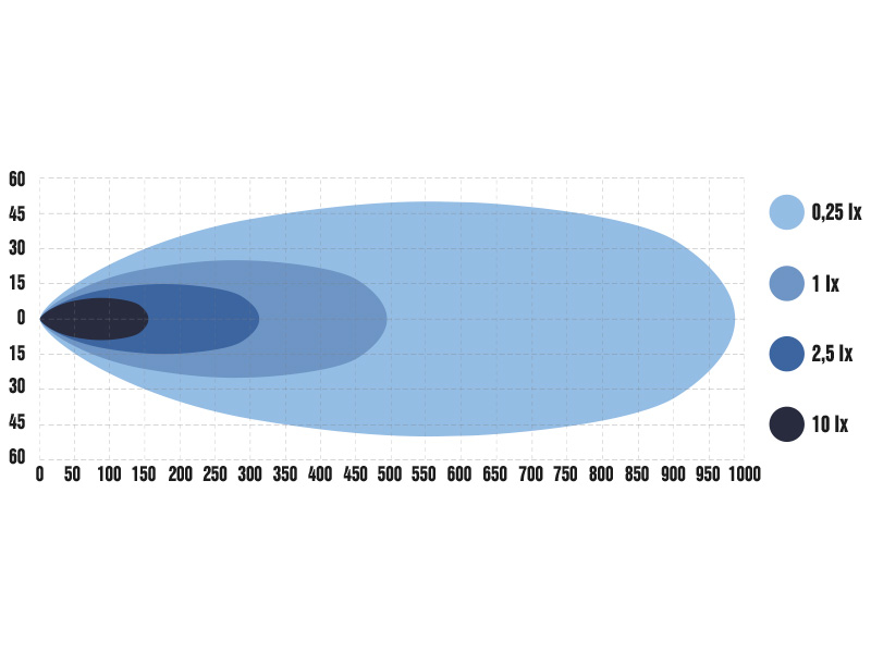 Optibeam E-BAR papildu luktura optimizētā gaismas izkliede ar diapazonu gandrīz 500 metru padara braukšanu naktī drošu un patīkamu. Faktiskais gaismas izstarojums 7500 lūmeni un krāsu temperatūra 5000 Kelvina garantē izcilu redzamību tumsā.