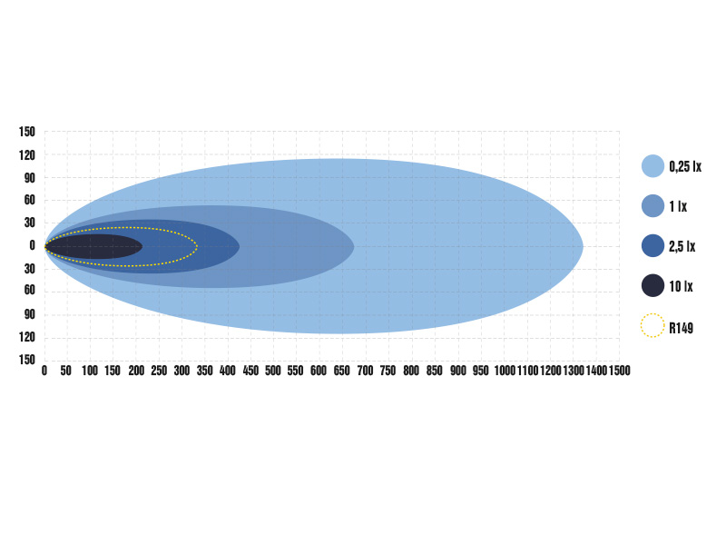 Gaismas diodes: Diapazons, 1 lukss: 332 m Divkāršs diapazons, 1 lukss: 674 m. Vada garums: 2,20 m. Strāvas patēriņš 26.88A @13.7V