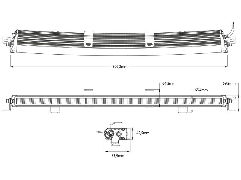 Gaismas diodes: SEEKER® Ultima 30 izliekts. 30 x Philips Zes 5000K LED mikroshēmas, IP68, 1,8 kg, Ref. 50, pilna jauda 7300lm / R112 6000lm Garantija (mēneši): 36