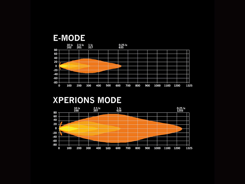 Gaismas diodes: Diapazons, 1 lukss: 317 m. Divkāršs diapazons, 1 lukss: 628 m