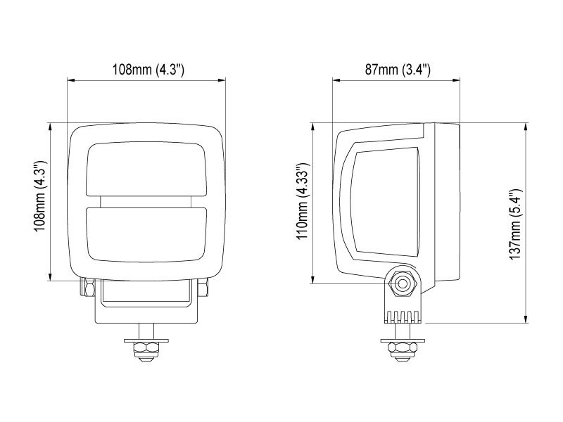 Gaismas diodes: Plašs plūdu raksts, silta gaisma, EMC apstiprinājums. ADR apstiprināts, iebūvēts 2 kontaktu Deutsch DT savienotājs, augstums w kronšteins 137mm, montāžas skrūve M10, darba temperatūra -40°C ... +85°C – pilna jauda max +50°C, triecienizturība 60G, vibrācijas izturība 15.3Grms 24-2000Hz