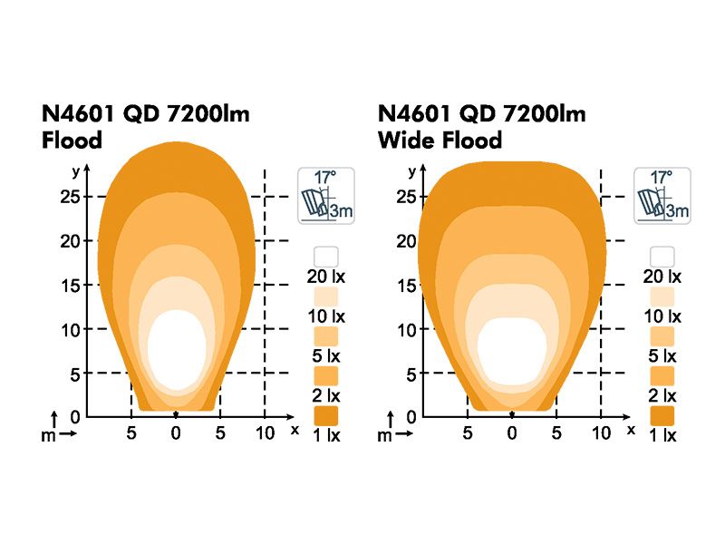 Gaismas diodes: Lieljaudas: alumīnija korpuss, polikarbonāta lēca, Scorpius N4601 QD, Quake - lieljaudas pretvibrācijas stiprinājums, Tālās gaismas, augstums w. kronšteins 159mm, 2,5kg. 11500lm (7200lm), 5700K, iebūvēts 2-pin Deutsch DT savienotājs, IP68, IP6K9K, SAE J1455, trieciens 60G, vibrācija 15.3Grms 24-2000Hz - 4.65Grms 12-2000Hz,Ch Klase 3, ISO 13766, ISO 14982, ISO 7637-2, darbības: -40°C … +85°C