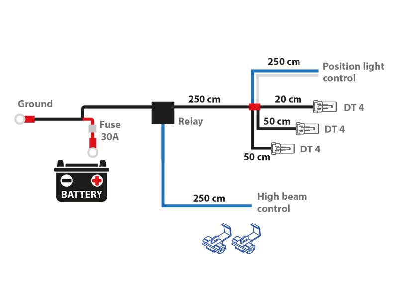 Single-Lamp Harness Kit (4-Pin, Deutsch DT, 12V)